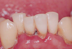 치석과 염증 등으로 잇몸과 잇몸뼈의 공간이 4mm가량이나 벌어져있던 치료 전과 비교했을 때 치료 후에는 잇몸과 잇몸뼈의 공간이 2~3mm를 유지할 수 있게 됩니다.