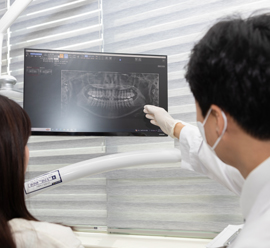 엑스레이는 육안만으로 확인 하기 어려운 치아의 손상도 또는 치아 뿌리 쪽의 염증 등을 확인할 수 있습니다.